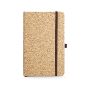 Caderneta de kraft com marca página em cetim e elástico para lacre. Contém aproximadamente 80 folhas marfim pautadas.