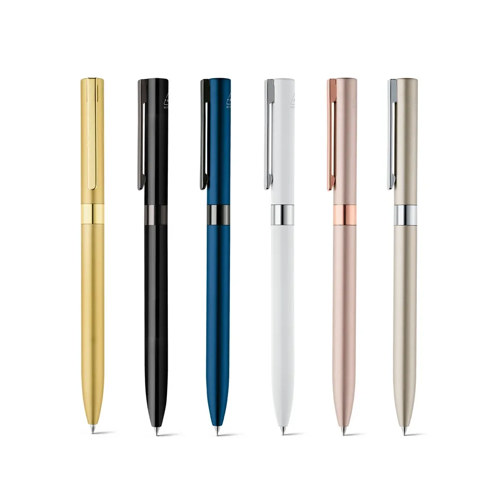 Esferográfica em alumínio com mecanismo twist e clipe de metal. Disponível em elegantes cores. Até 2 km de escrita. Escrita em preto. ø10 x 140 mm