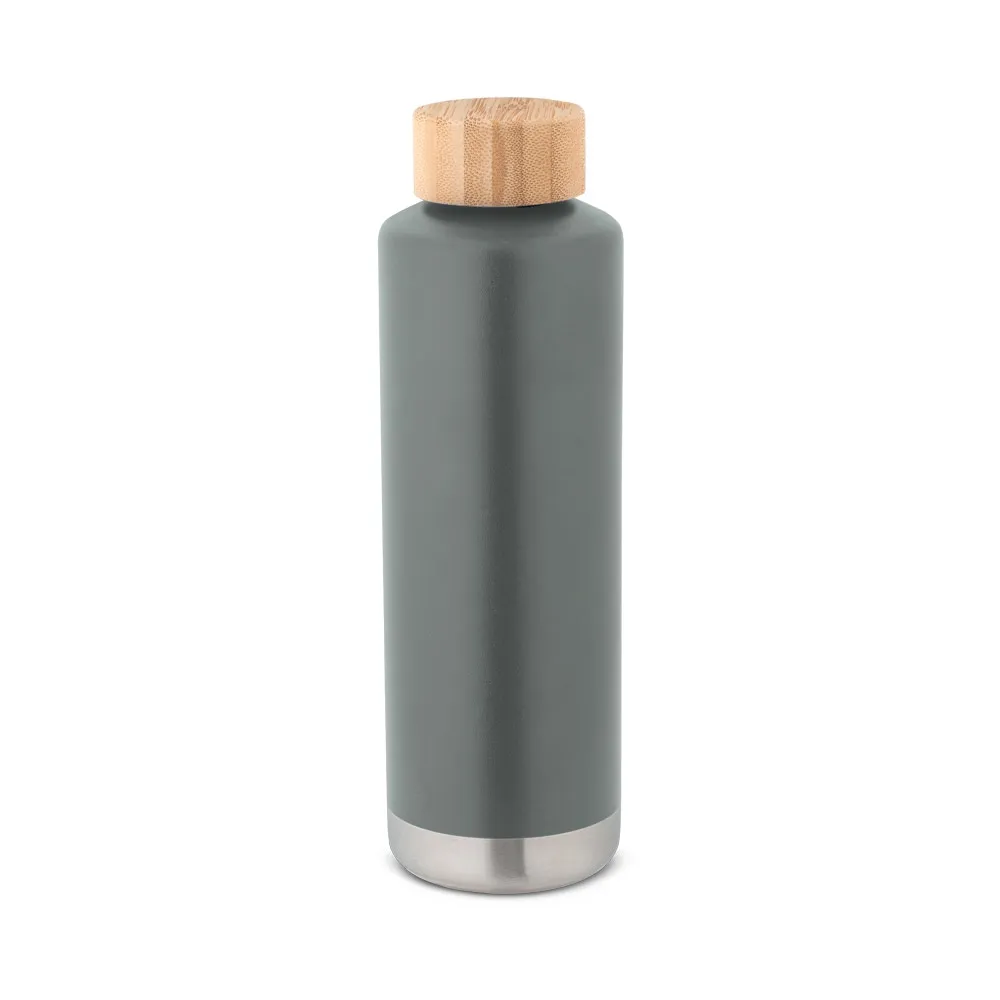 Garrafa em aço inox de parede dupla térmica, isolada a vácuo. Parede interna revestida de cobre e tampa em bambu com vedante de silicone para proteção extra. Capacidade até 640 mL. Parede com revestimento em pó que lhe confere mais durabilidade e resistência. Preserva as bebidas quentes por 16 h e frias por 48 h. Fornecido em caixa presente de papel kraft. Certificação EU Food Grade. A cor e o resultado da impressão nos materiais naturais pode variar entre produtos. ø72 x 233 mm
